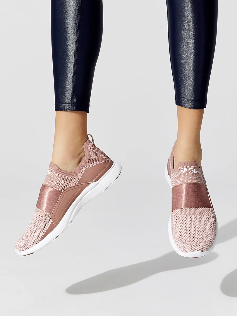 With a custom milled satin elastic strap on a slip on design, the Techloom Bliss from APL is so seamless, it feels like it becomes one with your feet. Utilizing their proprietary Propelium™ technology, the Bliss is designed maximizes energy generation and provides superior comfort for an ultra light running shoe.