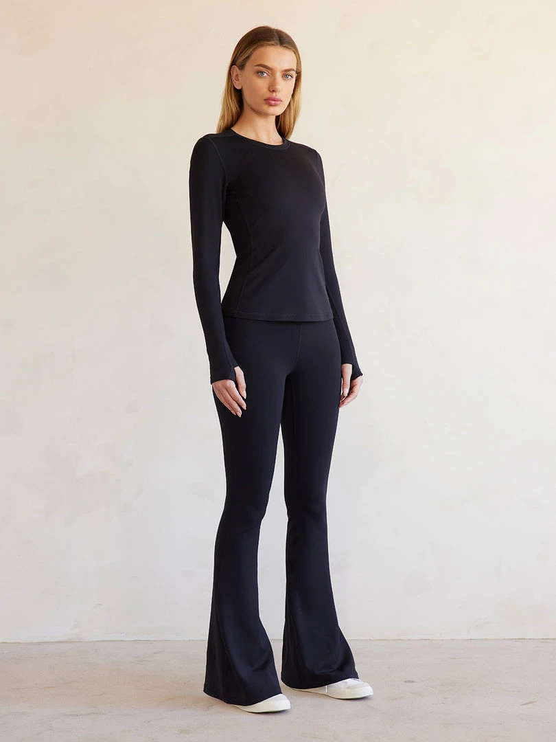 The ultra-flattering High Rise Flare Pants in Diamond Compression from Carbon38 are your new go-to bottoms for working out or wearing out. Featuring a double-faced wide waistband that smooths and contours and an easy fit below the knee for added comfort.