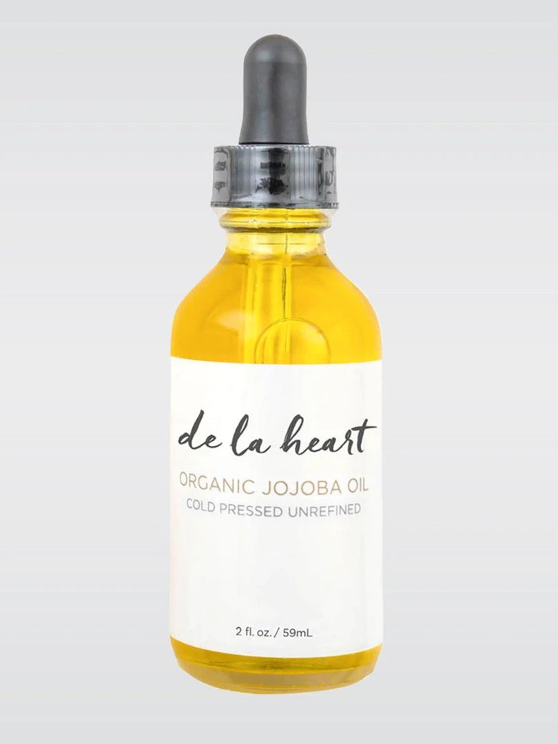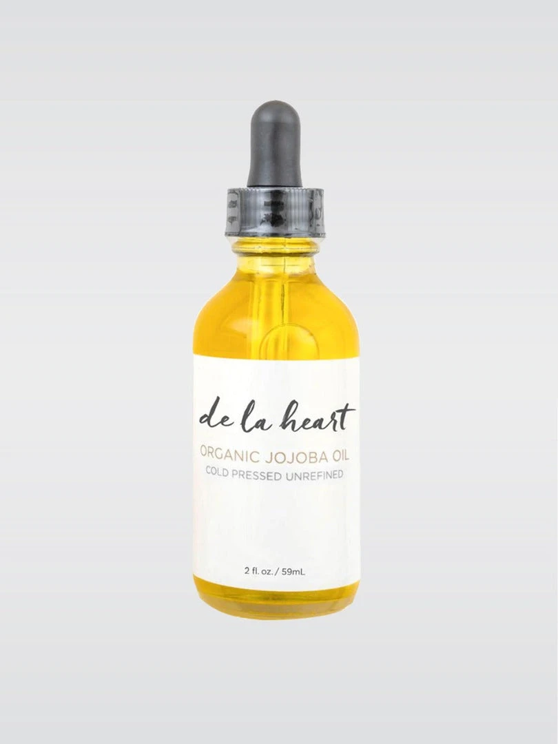 De La Hearts Organic Jojoba Oil provides relief for sensitive skin through its anti-inflammatory properties. Made from 100% organic, cold-pressed jojoba oil with nutrients like Vitamin E and B-complex that aid in gently repairing the skin.