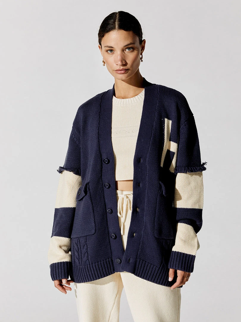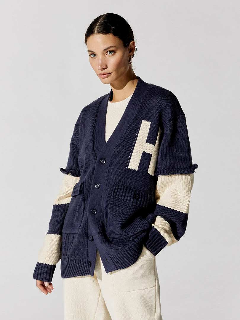 Polished prep meets laid-back cool in the Unisex Cardigan by Honor the Gift, Russell Westbrook’s line of off-duty staples. This cotton and acrylic blend knit takes a varsity cardigan silhouette and relaxes the fit with slouchy proportions, oversized pockets, and soft fringe along the sleeves. It’s a perfectly versatile, take-anywhere layering piece.