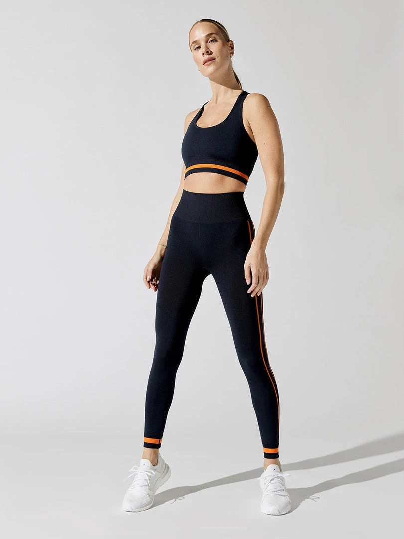 Sleek and smoothing, the Seamless Midi Pant from The Upside is a high rise, slightly cropped legging with a stretch drawcord and the brand’s signature arrow logo at the back. Made from super-soft, quick-drying performance fabric with a four-way stretch.