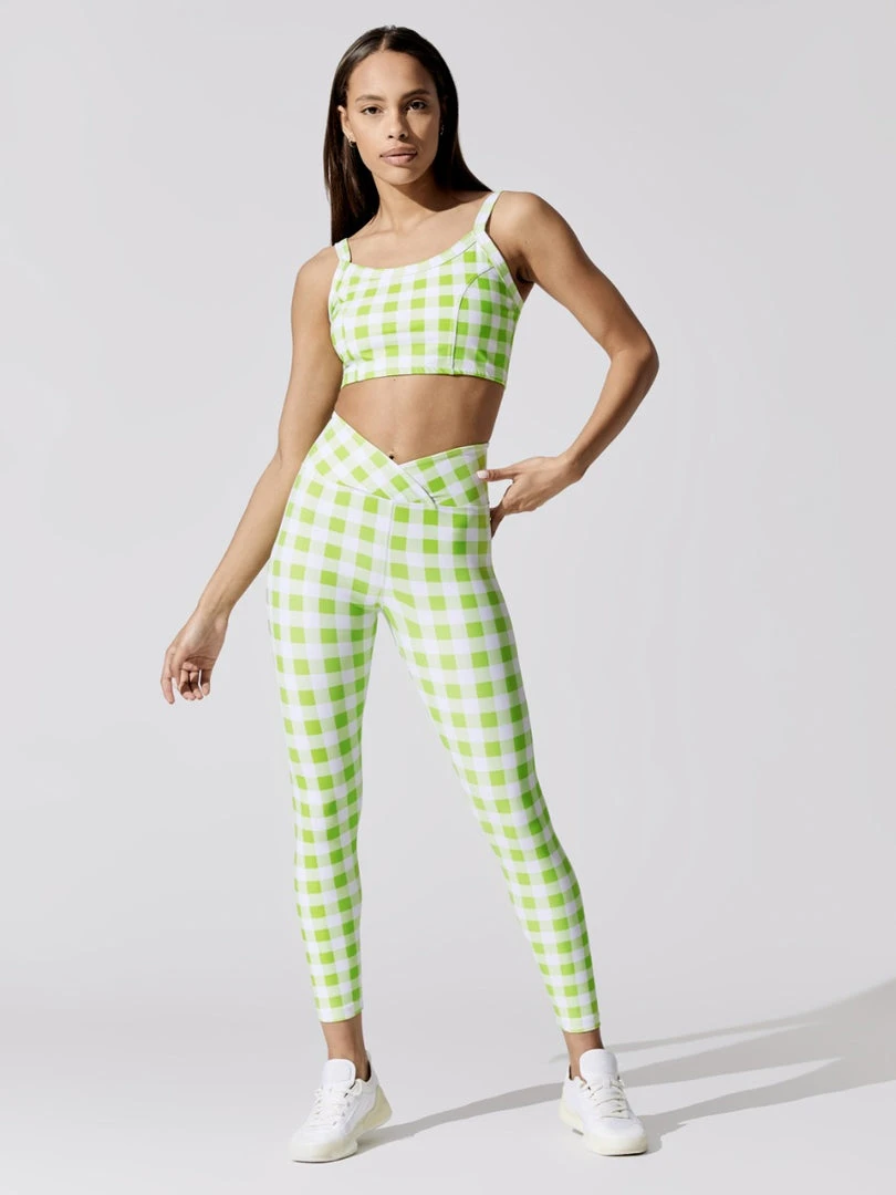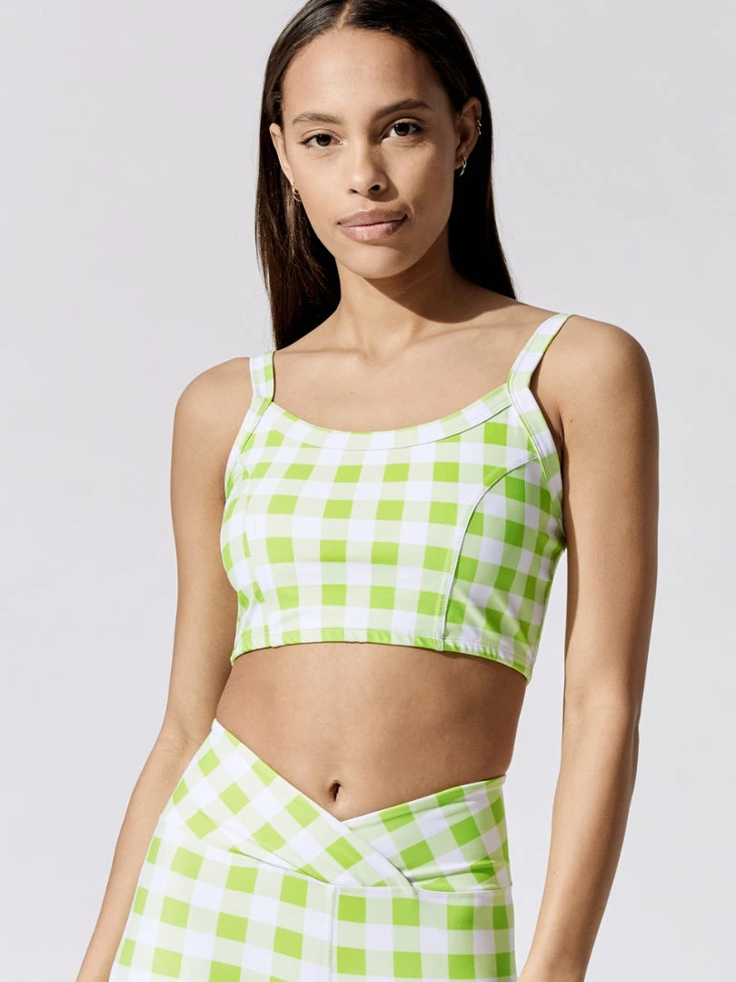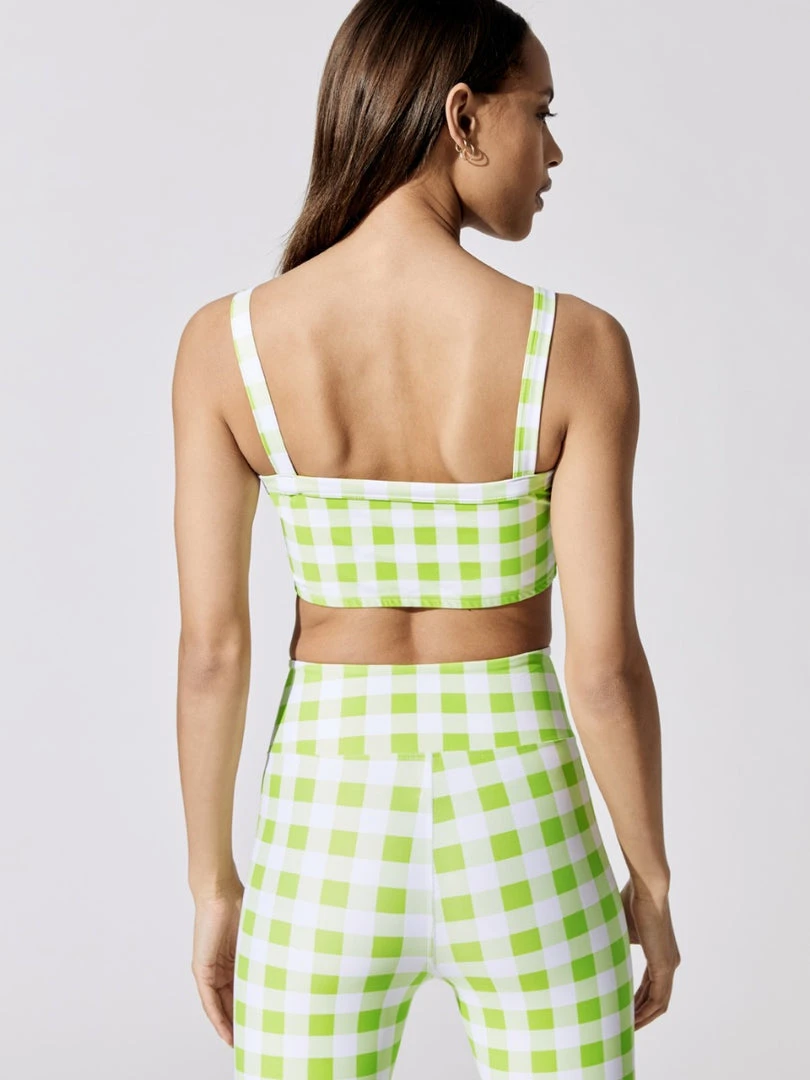 The Gingham Bralette from Year of Ours is a medium support sports bra with a scoop neckline, sporty seams, and slim over-the-shoulder straps. Fully lined for extra coverage, this classic longline silhouette is sweat-wicking for a comfortable workout.